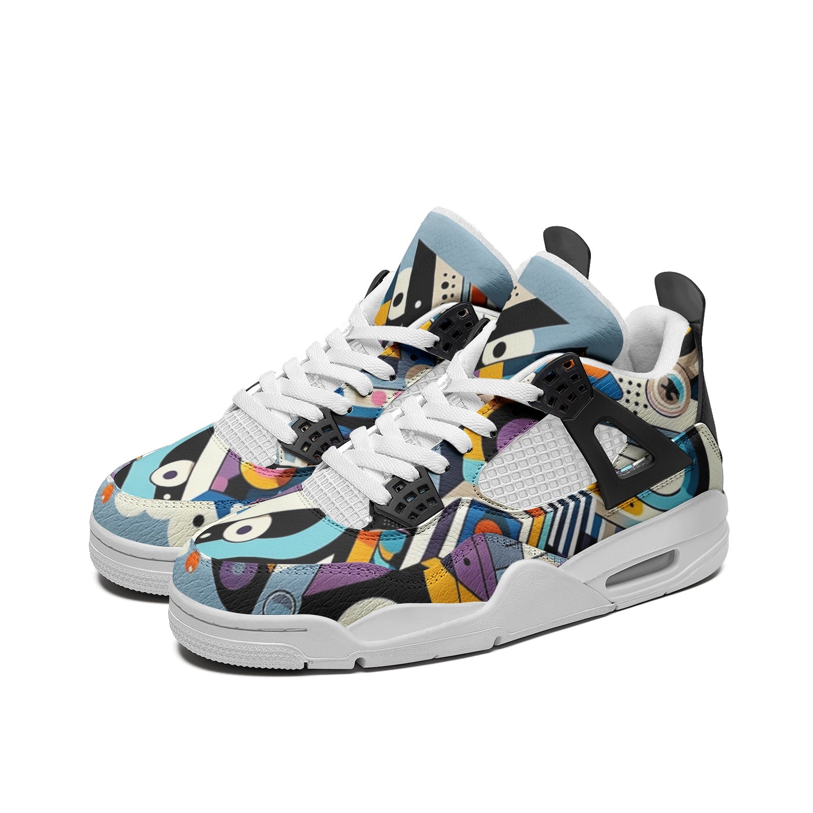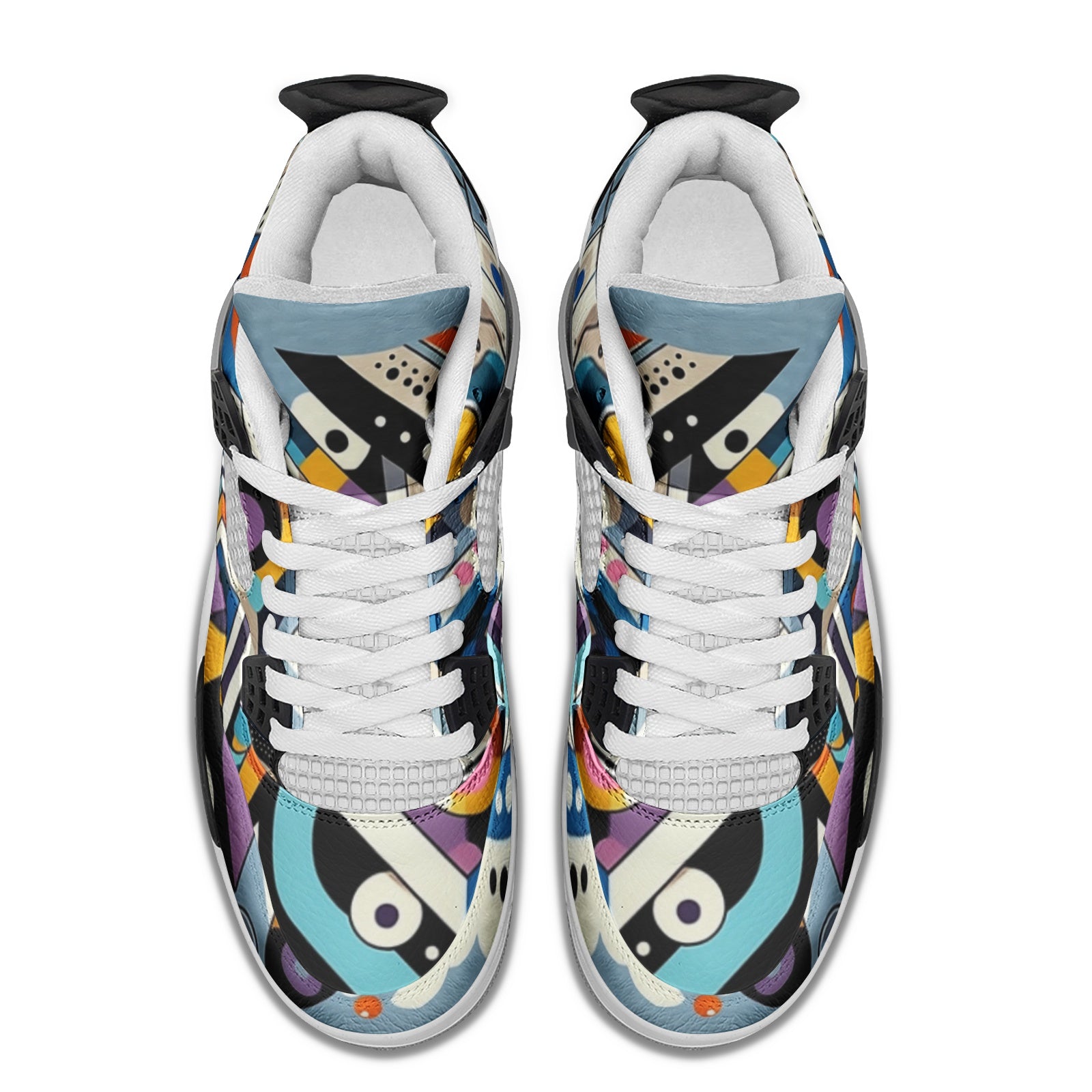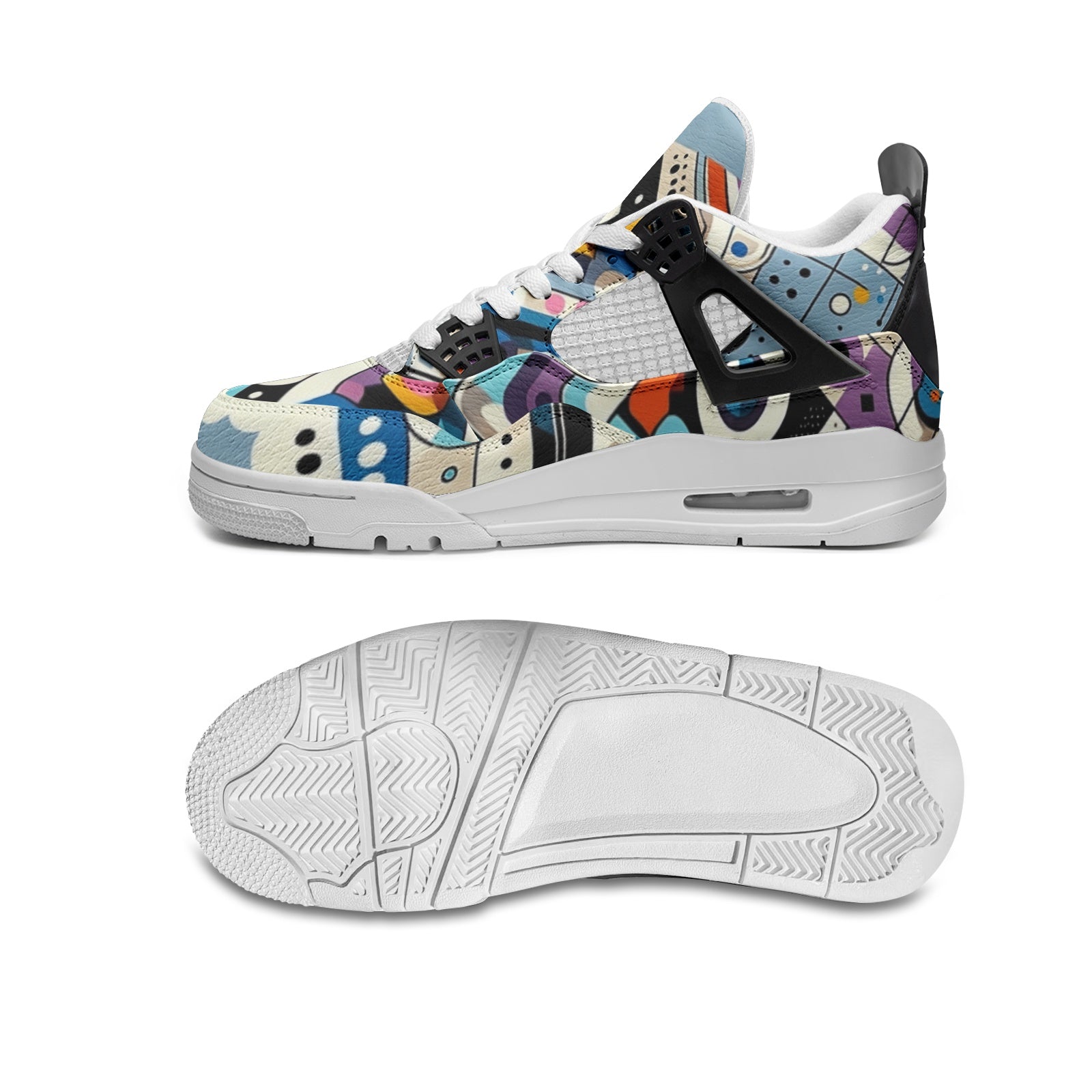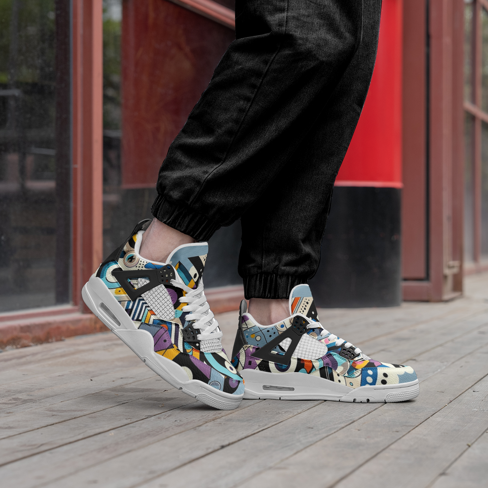 Introducing "Urban Rhythm" – a shoe pattern that dances to the beat of the city's heart. This design is a symphony of geometric precision and chromatic playfulness, crafted for the bold and the spirited. Each line, dot, and swirl is meticulously placed to evoke the pulsating energy of metropolitan life.